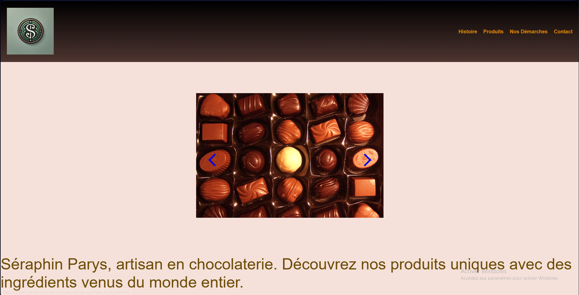 Sur ce projet, il fallait créer un site internet en langage de programmation (HTML et CSS) pour une chocolaterie à l'aide de l'application PHP Storm.